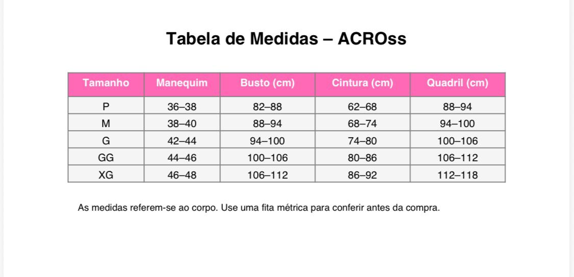 As medidas referem-se ao corpo. Use uma fita métrica e compare com a tabela.